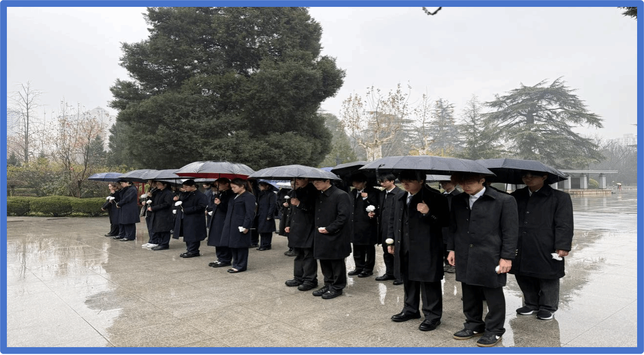 在国家公祭日来临之际的12月12日的西安,冬雨夹雪,寒意肃穆,西安外国语大学继续教育学院北京联航项目的40名师生迎着今冬第一场雨夹雪,前往西安烈士陵园,开展“风雪缅怀史 青春砥砺行”主题教育活动。在特殊天气中,一场庄严肃穆的祭奠活动,成为一堂生动深刻的爱国主义教育课。