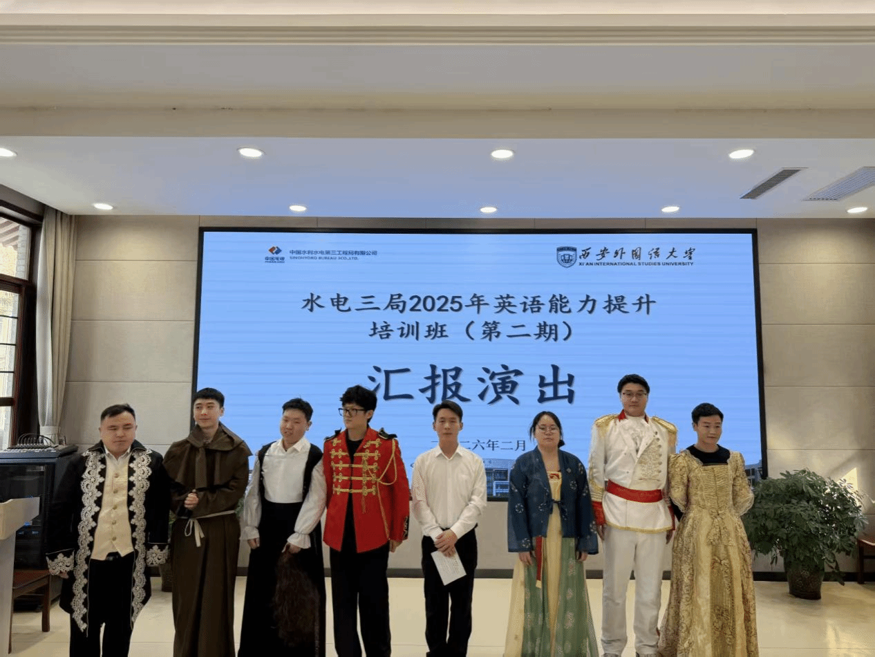 本次培训是水电三局与西安外国语大学深化校企合作的重要实践,通过定制化课程设计、沉浸式语言训练等形式,有效提升了学员在涉外工程场景中的专业沟通与跨文化协作能力。结业典礼不仅是对阶段学习成果的总结,更为后续持续合作奠定了坚实基础。