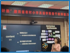 西安高新一小的高级英语教师黄新英作了《英语学科核心素养的“四维融合”课堂实践路径》的讲座。她结合本校不同年级教学中的优秀案例,对课程目标的制定作了详细的讲解,展示了如何将所学理论有效应用于实际课堂教学中。