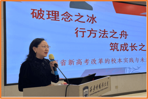 西安市第二十六中学黄景怡校长作了《陕西省新高考改革推进过程中的困惑与突破》的专题讲座。她以“破理念之冰、行方法之舟、筑成长之桥”为核心,从理论层面解析新课改底层逻辑与陕西命题,围绕考试、考查、教学方式变革展开阐述;同时结合校本实践,分享选科组班、生涯规划等方面的探索与突破路径,在互动中为学员解答新高考实施困惑,明晰改革实践方向。