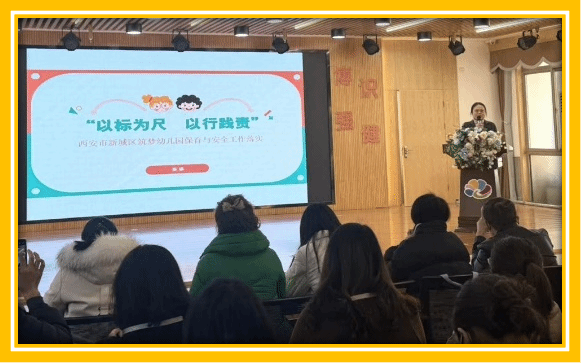 在西安市新城区筑梦幼儿园,露娜老师就幼儿园安全工作给学员们介绍了:卫生保健、安全防护、膳食营养、食品安全四个方面的内容,再次感受到只有保障了幼儿的安全,家长才能放心,幼儿才能健康快乐的成长。自主游戏和体育运动是筑梦幼儿园的一大亮点,学员们一起观看了孩子们的精神状态。